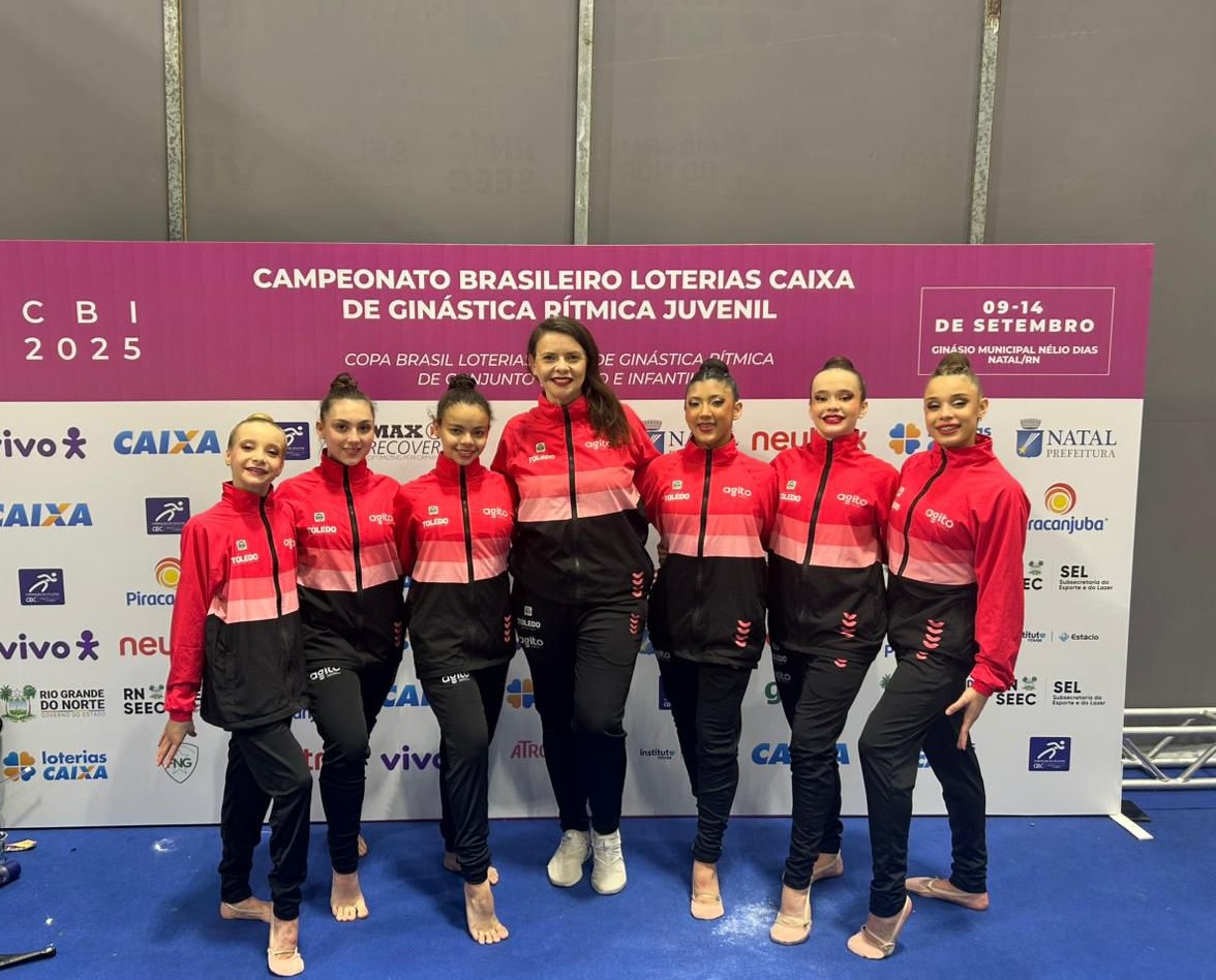 A equipe da Associação de Ginástica Toledana (Agito) alcançou uma conquista histórica no Campeonato Brasileiro Juvenil de Ginástica Rítmica (GR), realizado entre os dias 09 e 14 de setembro em Natal-RN. Formada pelas atletas Ana Carolina Lenz, Júlia Doy e Giovana Oliveira, sob o comando da treinadora Débora Souza, a equipe conquistou o 3º lugar geral por equipes, colocando Toledo no pódio entre as melhores do país na categoria.